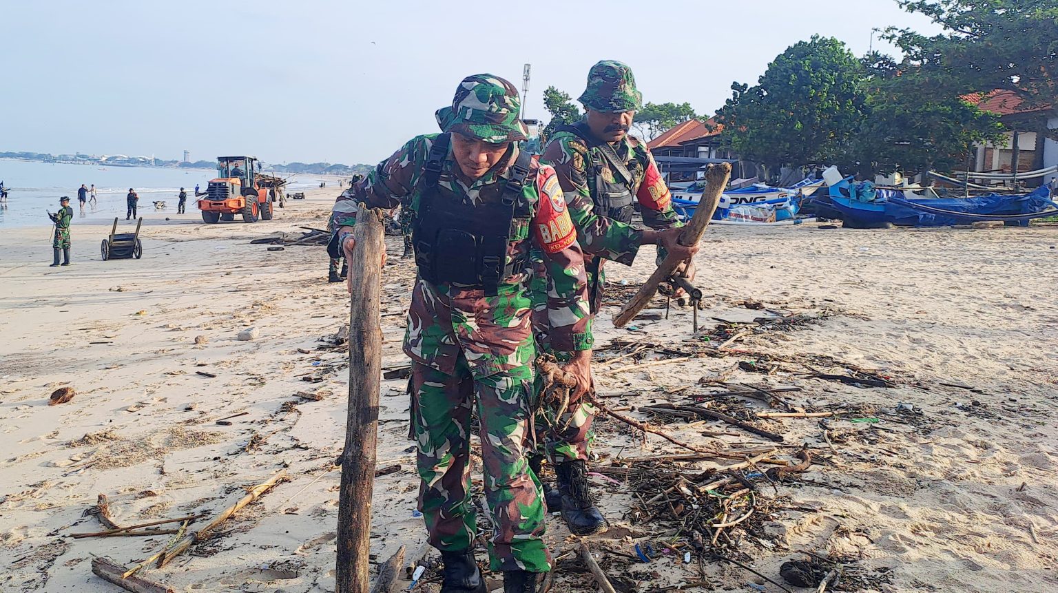 BADUNG –Karya Bakti Terpadu bersama TNI adalah wujud nyata atasi sampah Laut di pesisir pantai dalam program pemerintah, upaya meningkatkan akan pentingnya memelihara dan menjaga keasrian pantai. Bersama TNI beserta Dinas Lingkungan Hidup dan Kebersihan (DLHK) Badung dan Desa adat setempat, melaksanakan pembersihan sampah disepanjang bibir pantai. Badung, Bali. Minggu, (09/02/2025)