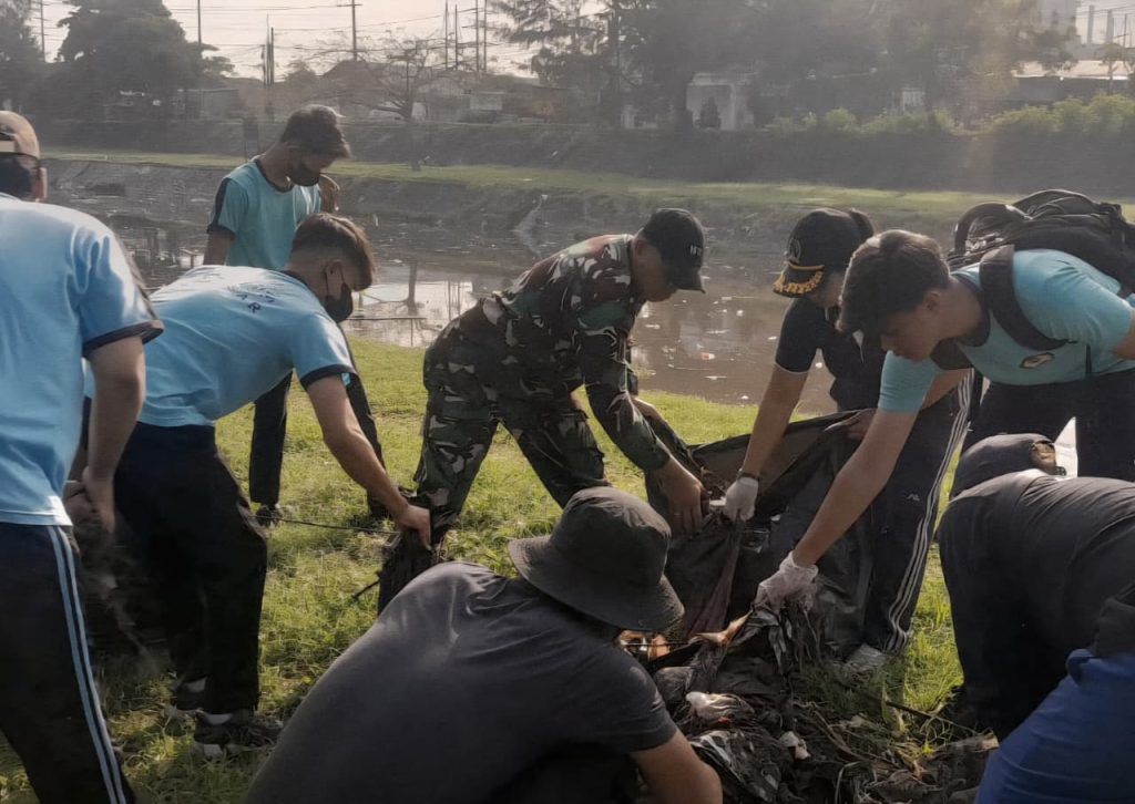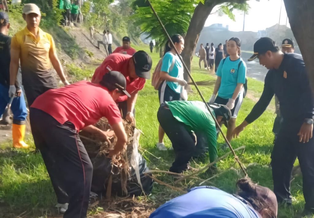 BALI – Denpasar, Dalam rangka Bulan Bakti Karang Taruna, Babinsa Pemogan, Serka Budi Muhtar, bersama karang taruna dan penggerak bakti sosial melaksanakan bersih-bersih gotong royong pasca banjir di Kawasan Sungai Taman Pancing Barat, Banjar Glogor Carik, Desa Pemogan, Kecamatan Denpasar Selatan, Kota Denpasar. Kamis, (02/10/2025).