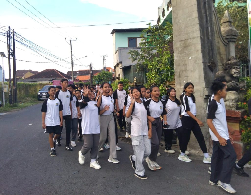 BALI – Denpasar, Dalam rangka memperingati Hari Ulang Tahun (HUT) yang ke-6, SMP Negeri 14 Denpasar menggelar kegiatan jalan santai yang berlangsung meriah dan penuh semangat. Acara ini dilaksanakan pada hari Rabu, tanggal 29 April 2025, mulai pukul 07.00 WITA, bertempat di lingkungan sekolah yang terletak di Dusun Kertalangu, Desa Kesiman Kertalangu, Kecamatan Denpasar Timur. Kegiatan ini berhasil menarik antusiasme masyarakat dan warga sekolah dengan diikuti oleh sekitar 1.000 peserta.